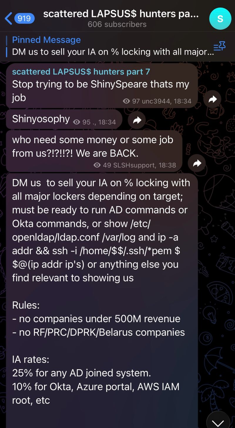 ‼️ Scattered LAPSUS$ ShinyHunters members have returned with new breaches and serious threats.