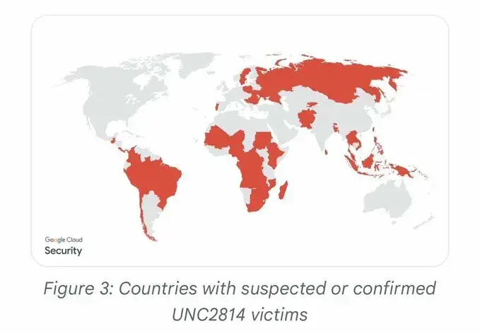 GTIG did not directly observe exfiltration during this campaign’s disruption window, but the access UNC2814 had achieved would have enabled exactly that kind of surveillance capability. The targets — telcos and government entities in 42 confirmed countries — represent the infrastructure backbone of national communications systems worldwide.