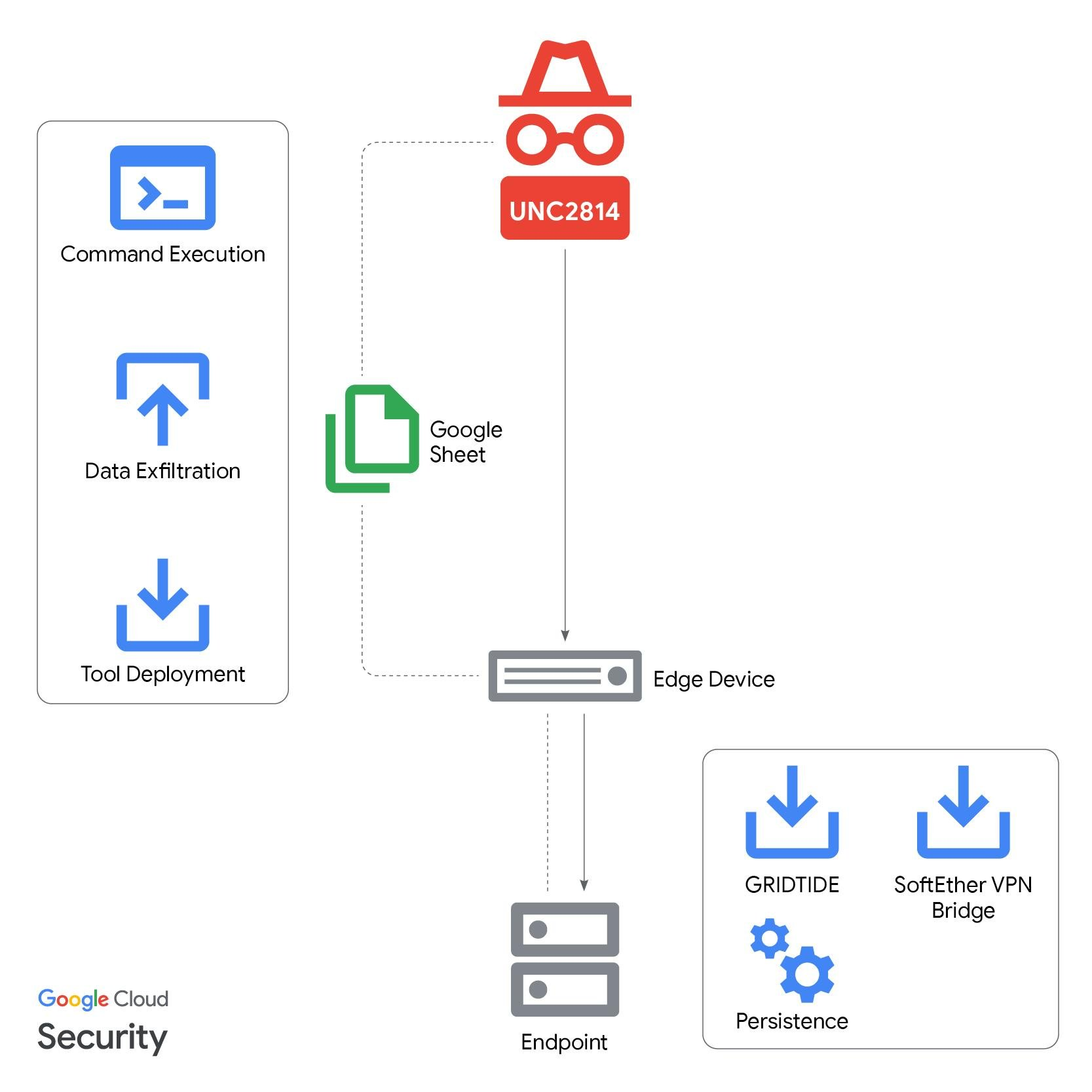 The technical centerpiece of UNC2814’s recent campaign is GRIDTIDE — a lean, capable C-based backdoor that executes shell commands, uploads files to victim hosts, and exfiltrates data from compromised systems. What makes GRIDTIDE particularly clever — and particularly difficult to detect — is its choice of command-and-control (C2) infrastructure: Google Sheets.