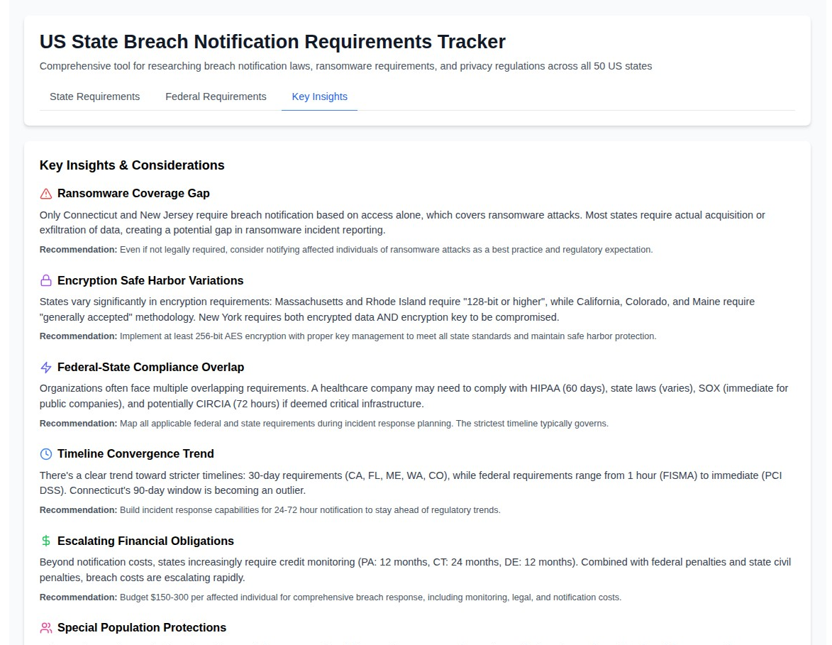 - Legal Counsel: Quickly reference specific state requirements during breach response