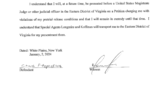 District Court Decision: In January 2024, Judge Leonie M. Brinkema sentenced Fitzpatrick to just 17 days time served plus 20 years of supervised release, with the first two years as home confinement. The judge’s reasoning included: