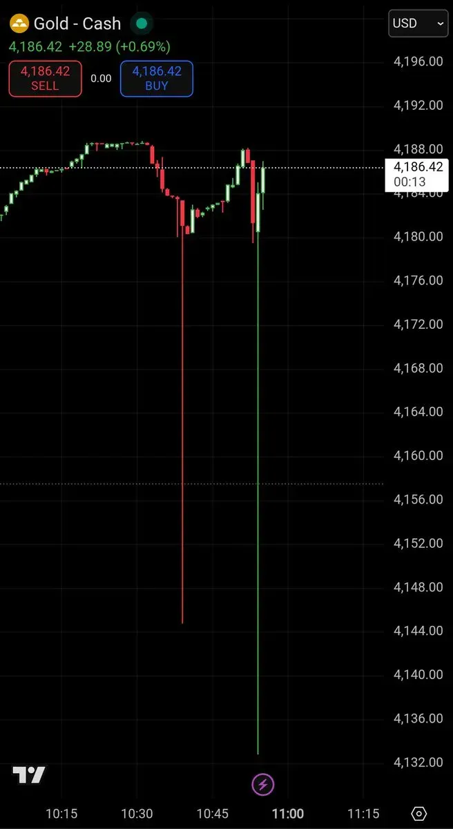 - Gold printing unusual $40 liquidation wicks that instantly recovered